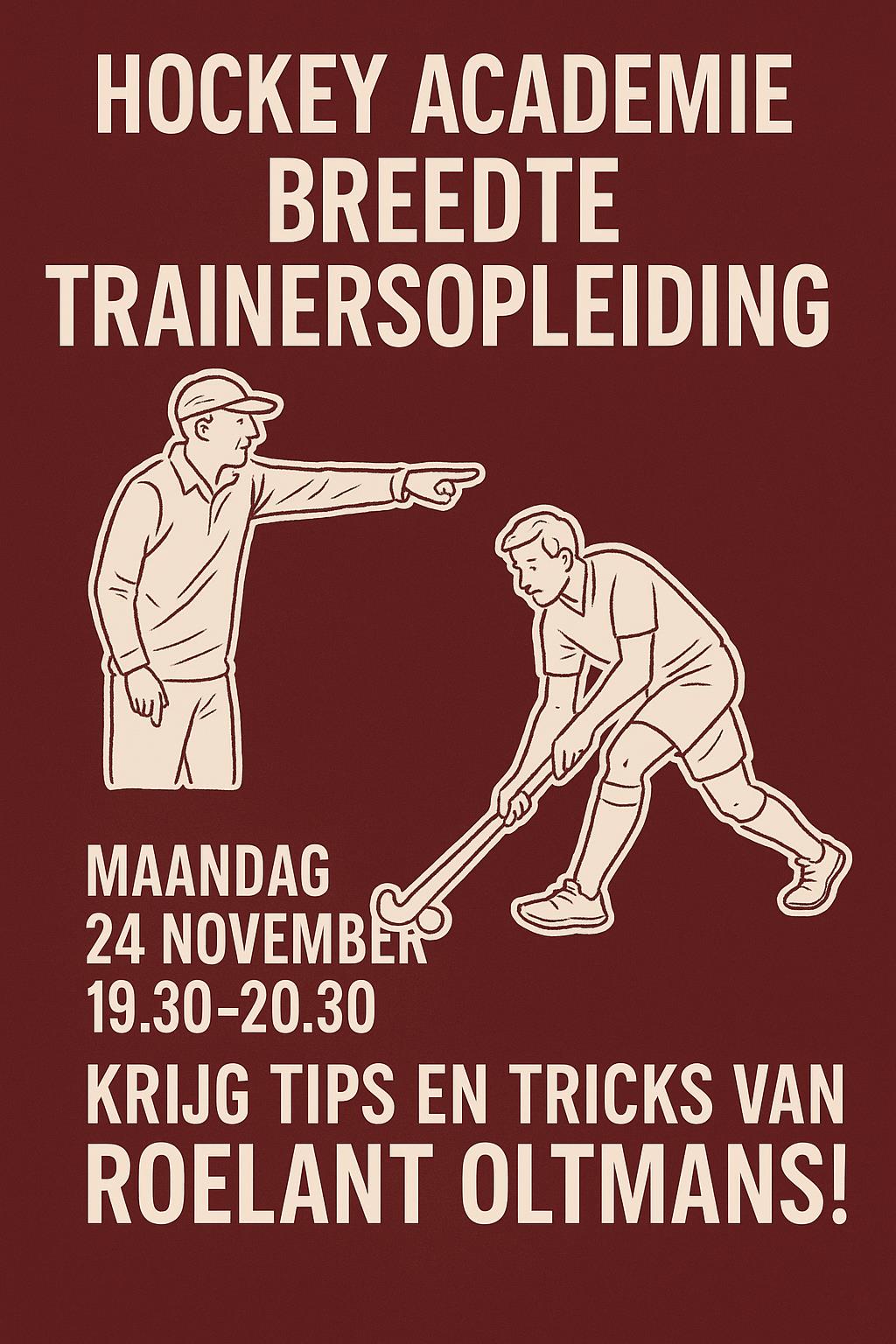 24 november 19.30 uur - Trainers opleiding Hockey Academie breedte